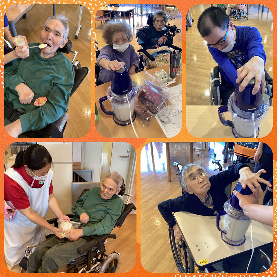 午前中は保護者会の皆さんから頂いたプレゼントの口腔ケア用品をGETするため、付き添い職員はガチャガチャで選出され、みんなで協力して苑内に隠された宝石を探し、暗号を解読してお宝GET出来ました。