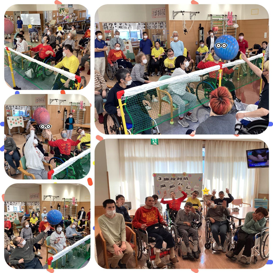 新聞紙で作ったボールを鬼に対して投げ、その後は鬼と利用者に分かれてボッチャ対決しました。